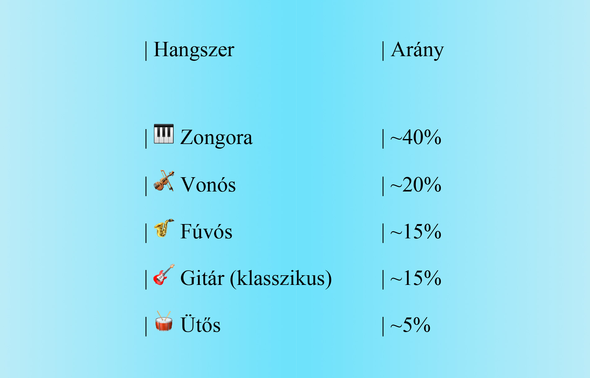 - zongora és hegedű extrém gyakori